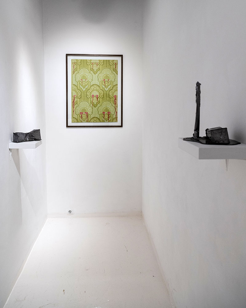 Complex sculptures and objects made of metal, ceramics, wood, and fabric are arranged by the artist as if frozen in time—like a tableau where each element exists in its own shadow, staying still but still there. Bulnygin crafts lifelike plants out of metal, a goddess from old furniture and seashells, and a two-headed piglet as a nod to the Stalinist era, juxtaposing the dead and the living, the hard and the soft, the sad and the comical in an estranged rhyme.